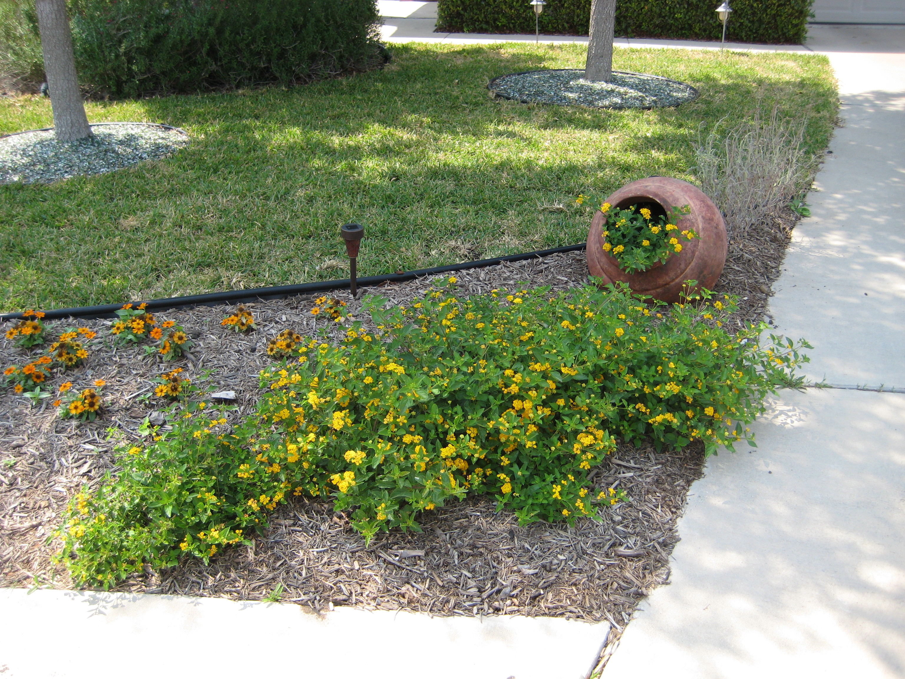 Think about what you will be doing in your yard. If you have young children and pets you will need more open lawn. If the kids are grown and you are a gardener, then plan for more space to grow vegetables and flowers. Decide how much time and effort you want to put into maintaining your landscape. Plan for a more elaborate landscape design if you really enjoy working in the yard. To minimize maintenance, consider a simple landscape design utilizing smaller lawn areas, more mulched areas, native plants, pathways for heavily traveled areas, borders around beds, the use of more perennials and less annual flowers, flowering trees and shrubs for color, and an irrigation system. Lay a garden hose on the ground in the shape of a proposed bed to help get a better idea of how it will look.