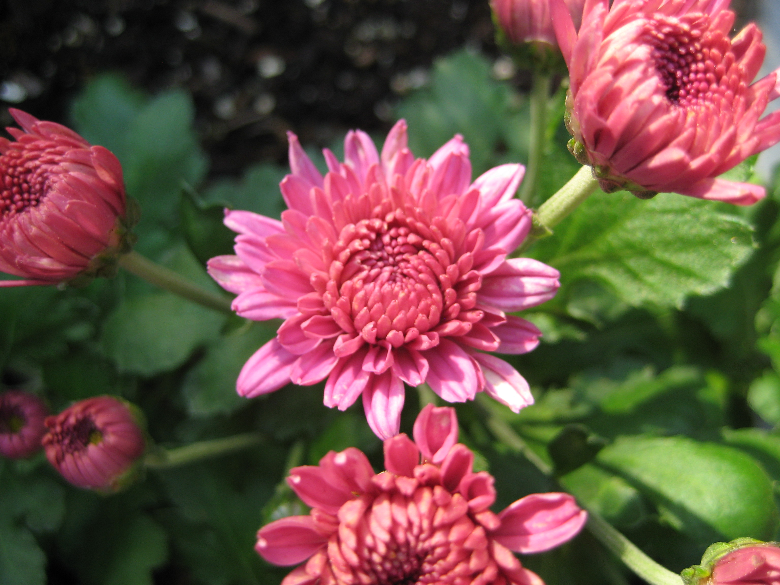 Plant containerized Chrysanthemums anytime during the spring, summer, or early fall. The earlier they are planted, the better developed their root system will be come winter. When planting, incorporate 2 – 4” of peat moss or compost into the soil and space them 18 – 24” apart to allow adequate air circulation. Water them regularly in the summer to a depth of 6 – 8” and mulch. Apply a complete fertilizer such as 5-10-10 or 5-10-5 in the spring and again in August.