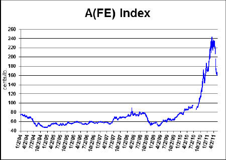 According to the National Cotton Council, the international price of raw cotton, as indicated by the Cotlook “A” Index, has increased 145.9% from April of 2010.