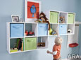 * Bring in space-maximizing organizational products like colorful cubbies with canvas bins or decorative shelving units. MyLowe’s makes it easy to find storage products that will fit in your space. Simply enter your room dimensions and the site helps identify solutions that will fit your needs.